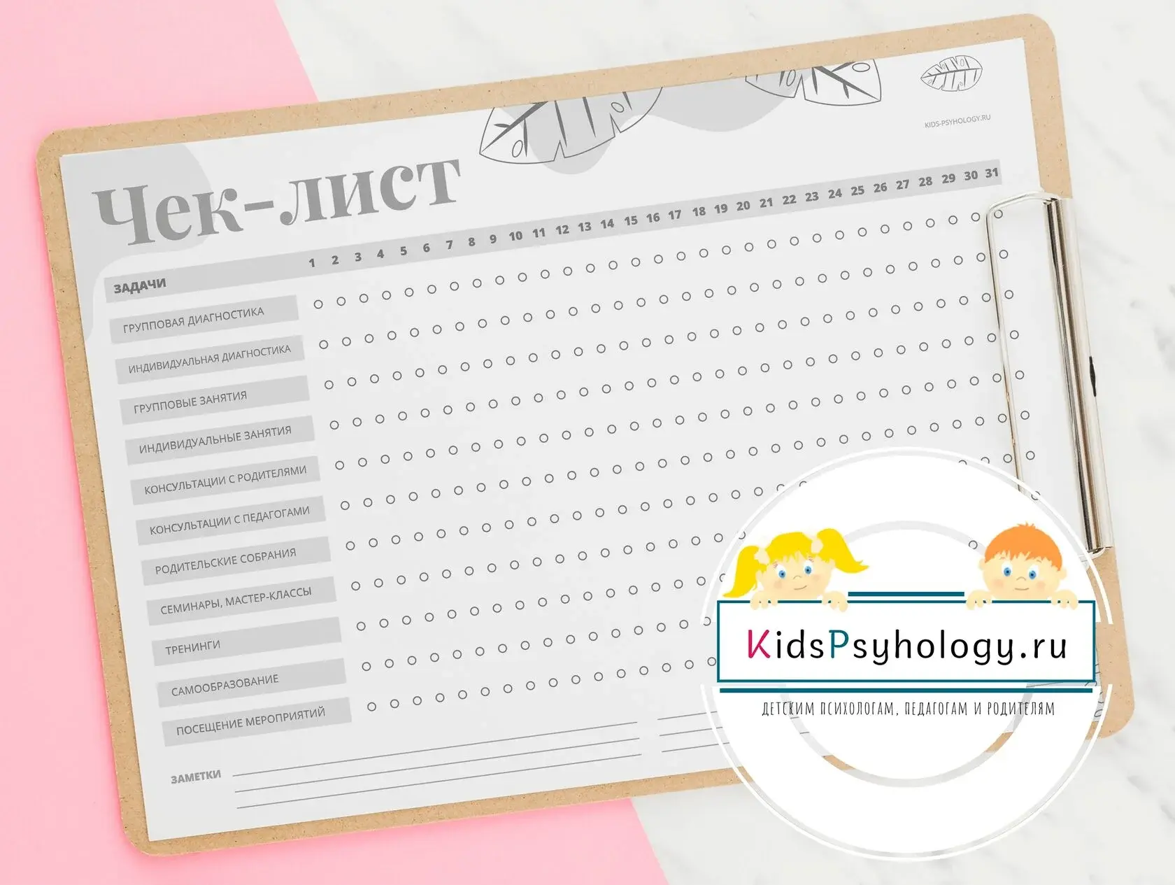 В чек-лист психолога мы включили все основные направления работы, после выполнения которых вам останется лишь поставить отметку. Чек-лист значительно экономит ваше время, так как больше не придется записывать выполненные задачи и вспоминать даты. Распечатывайте шаблон раз в месяц и систематизируйте свою работу, в дальнейшем это точно поможет вам при составлении итогового отчета за полугодие или год, а также оценить эффективность своей работы и наметить важные задачи.