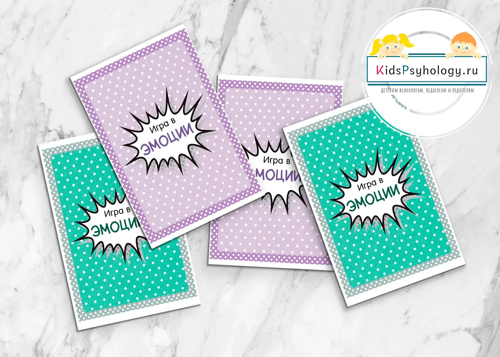 1. Разделите игровые карточки на две стопки – карточки активности (зеленые) и карточки эмоций (фиолетовые). Перемешайте каждую стопку и положите ее на