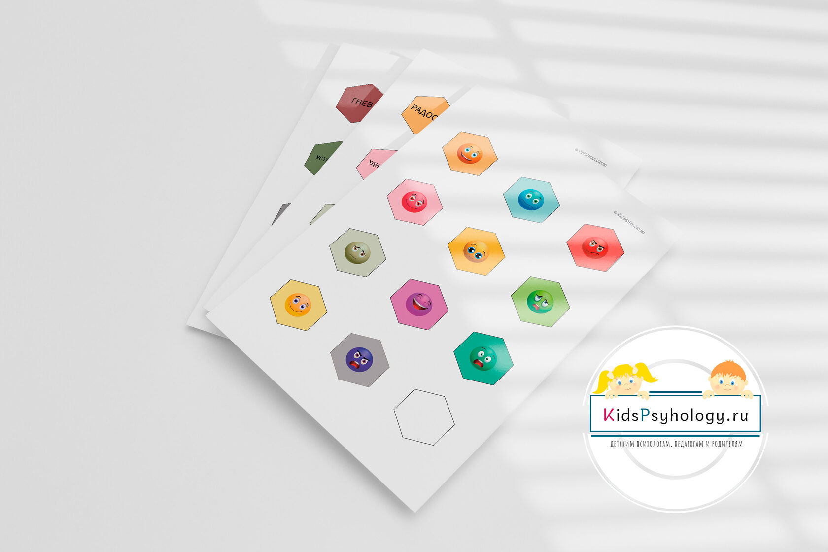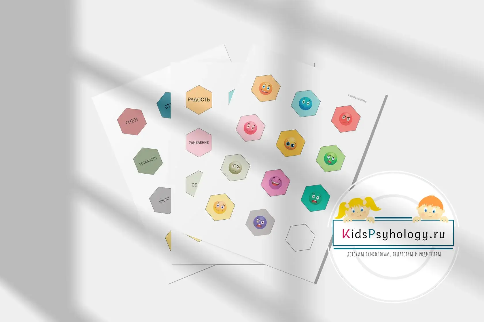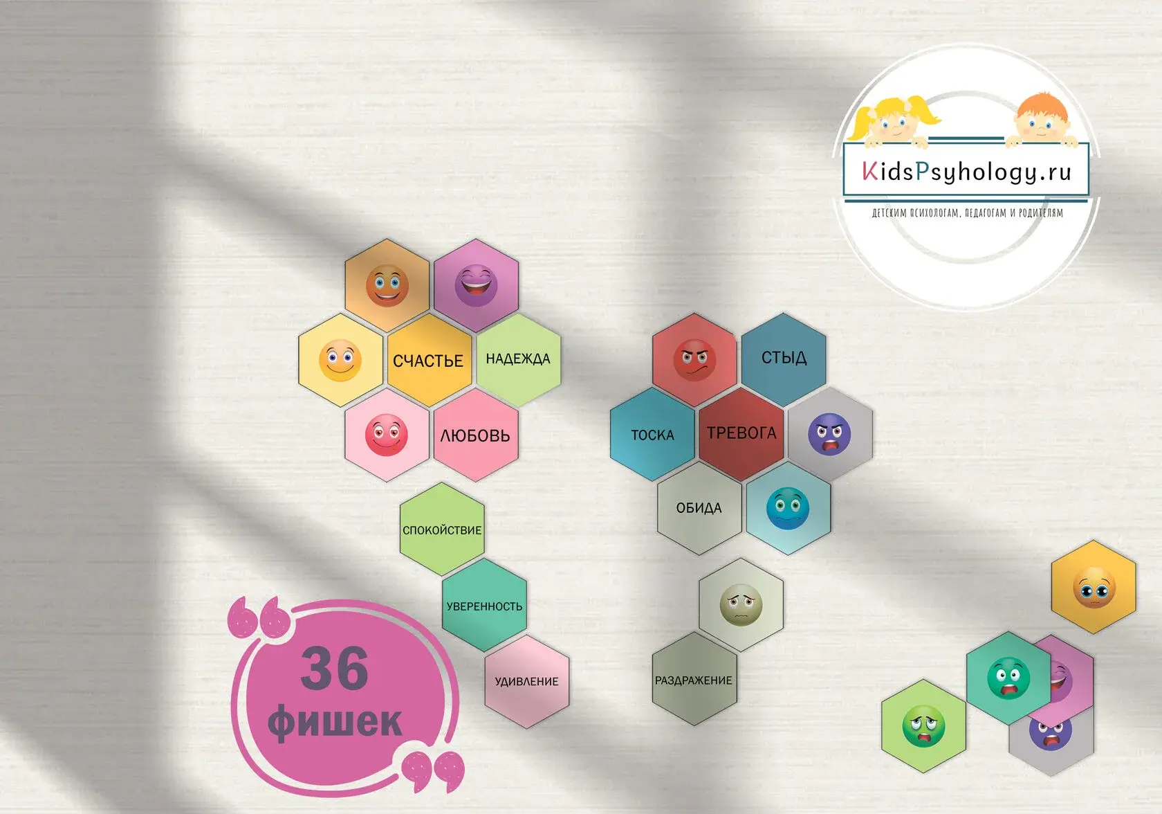 22 фишки мозаики с названиями различных чувств (2 листа А4);