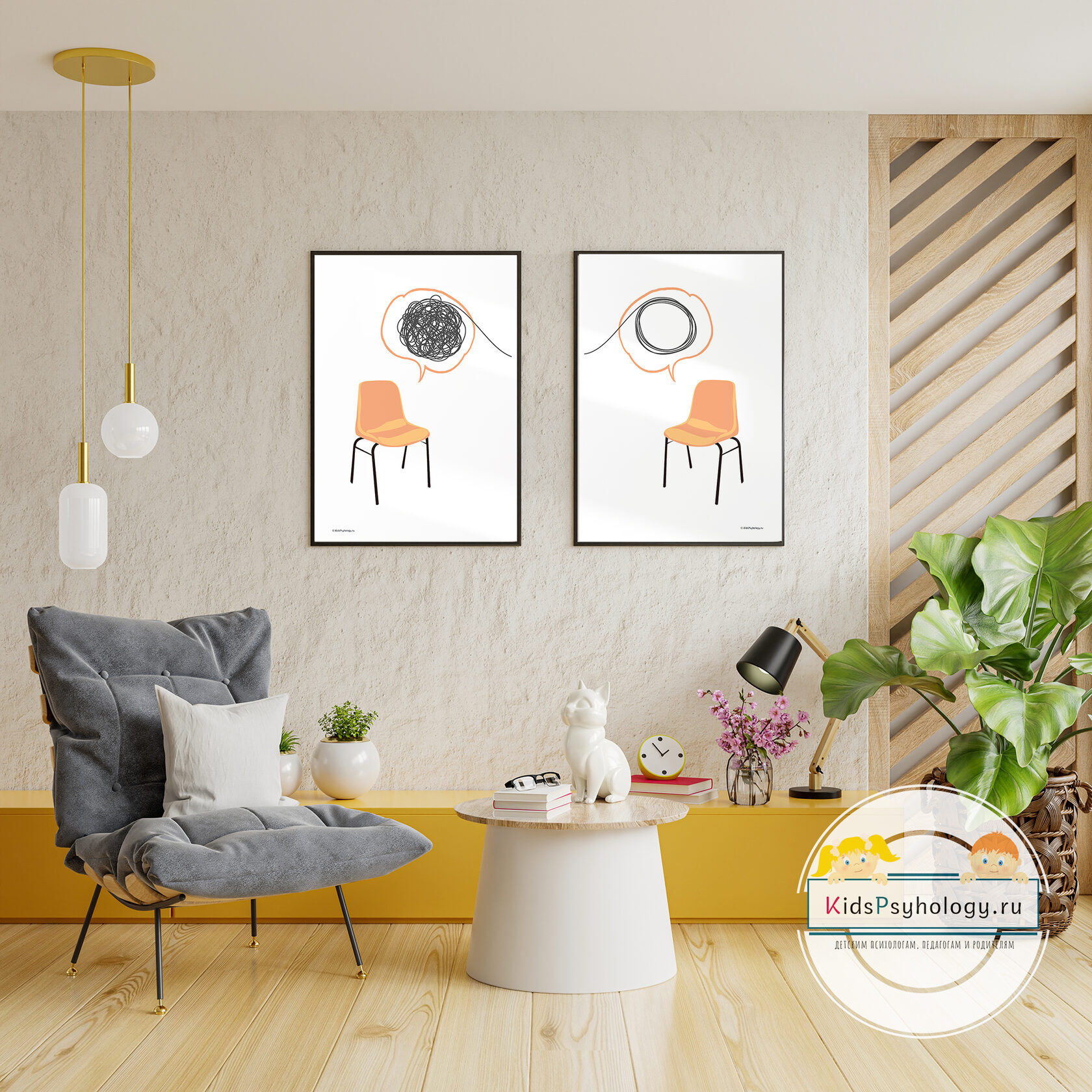 Простой, легкий, незатейливый сет из двух постеров украсит вашу рабочую зону и сделает кабинет стильным и современным! Мы специально создали этот набор арт-постеров, чтобы отразить смысл консультационной деятельности психолога, психотерапевта, коуча, психотренера и других специалистов.