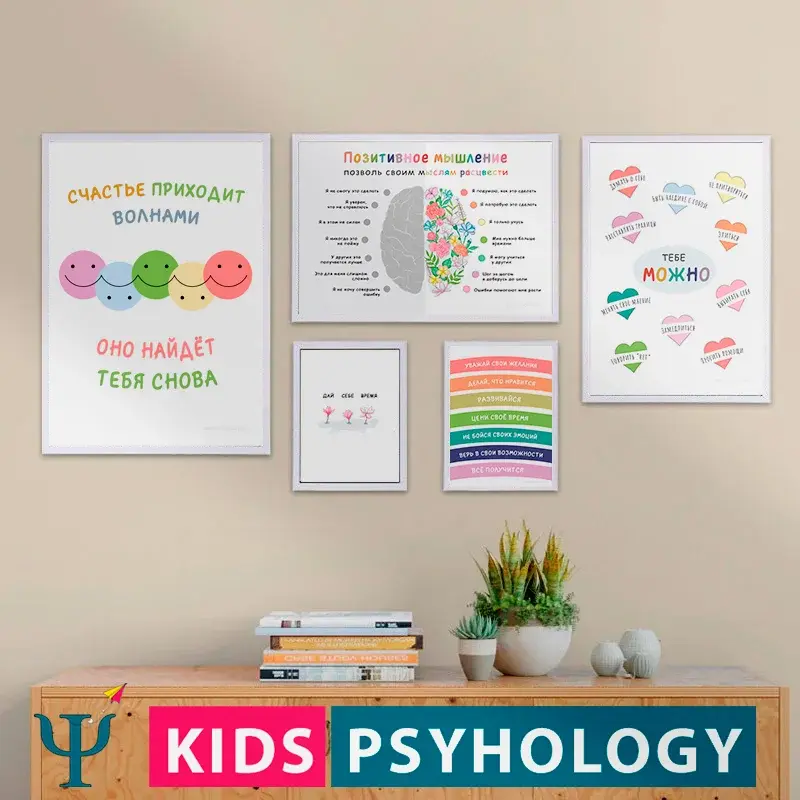 Набор из 5 постеров "Позитивное мышление" - это мотивационные произведения, вдохновляющие на рост и позитивный настрой. Комплект идеально подойдет для кабинета психолога, психотерапевта и любого пространства, нуждающегося в искре вдохновения!