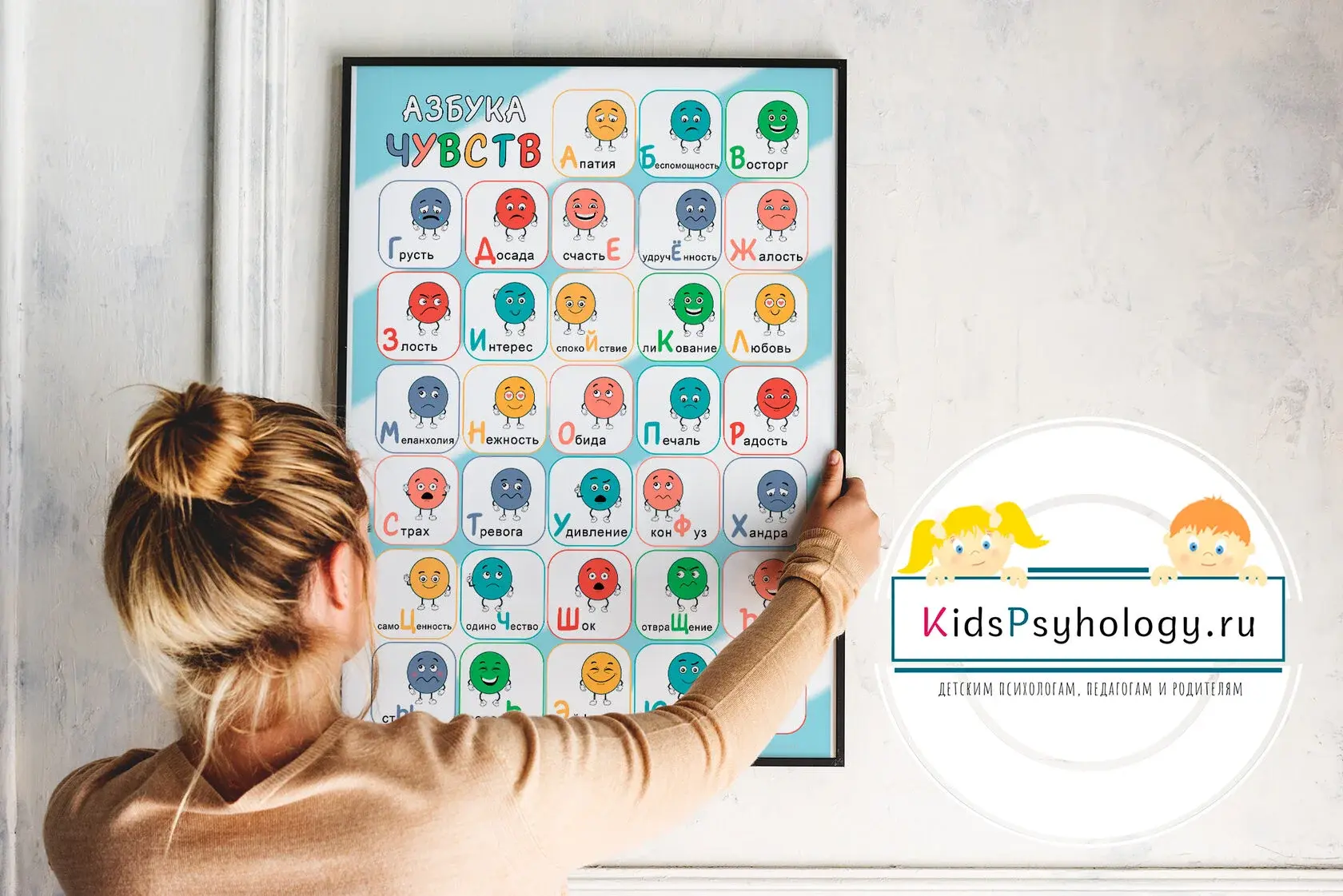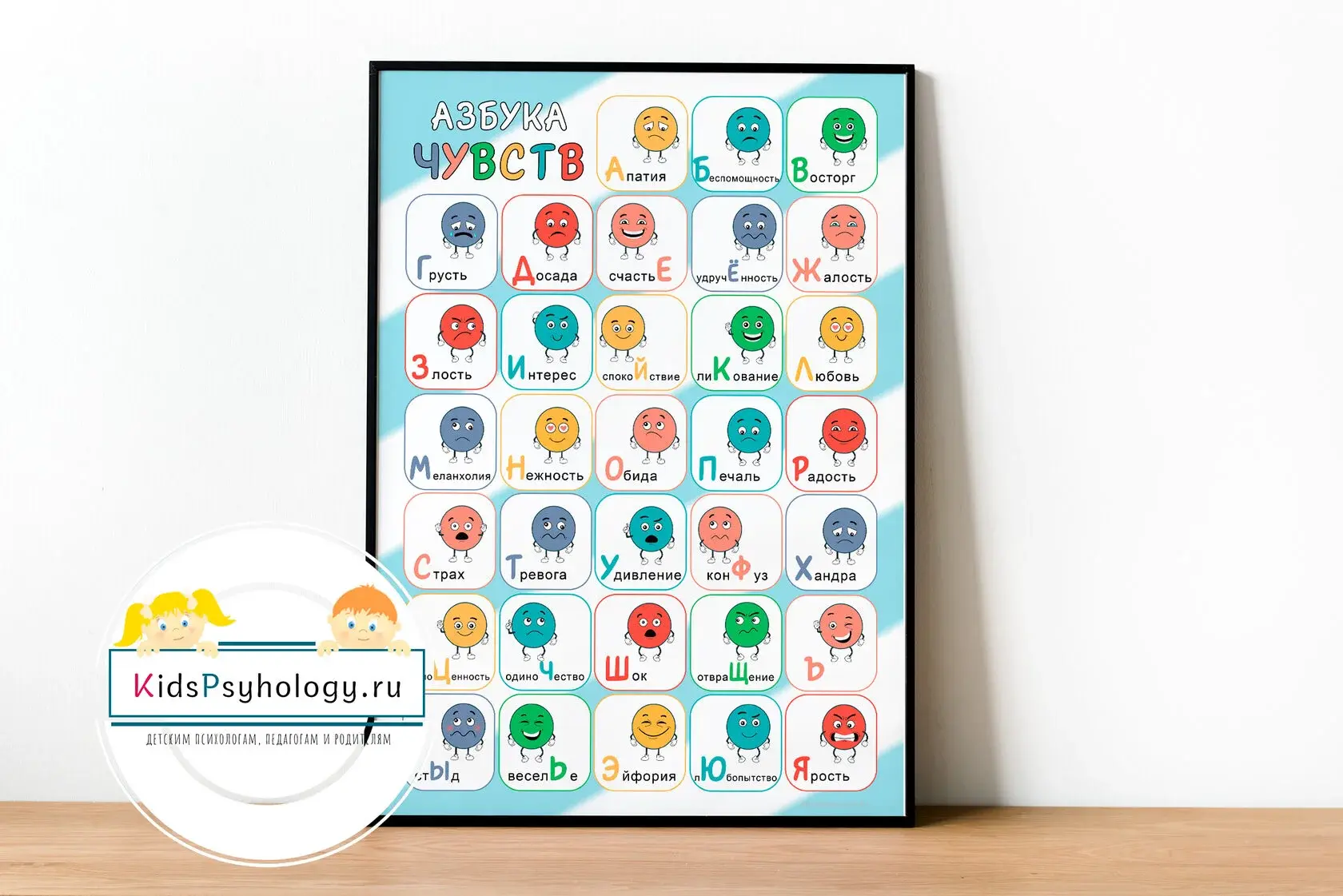 Плакат "Азбука чувств" - это своеобразный эмоциональный словарь для детей, подростков и взрослых, которым бывает трудно выразить и назвать свои чувства. На плакате представлен алфавит от А до Я с различными словами и изображениями, обозначающими различные эмоции, чувства или же состояния.