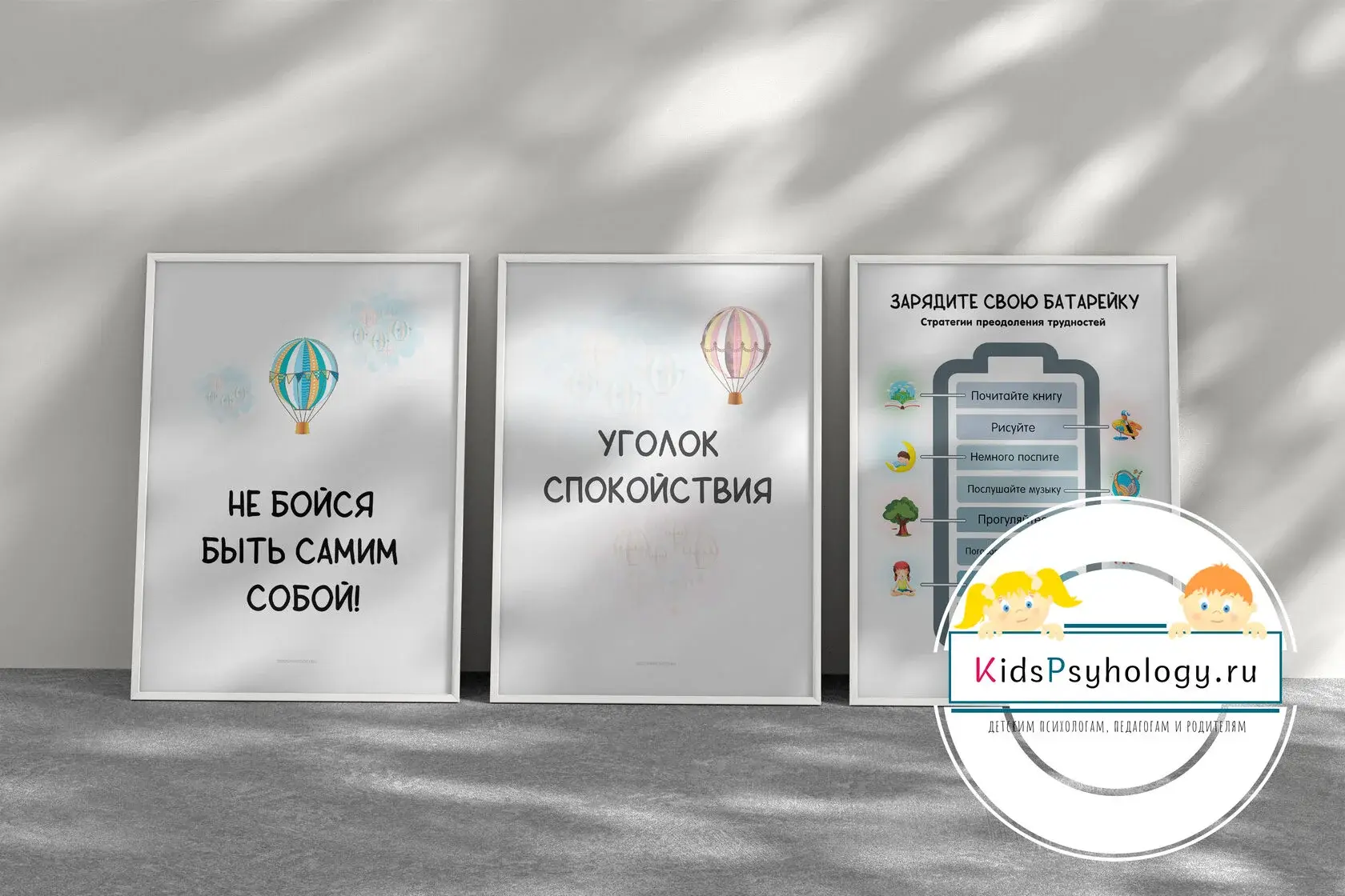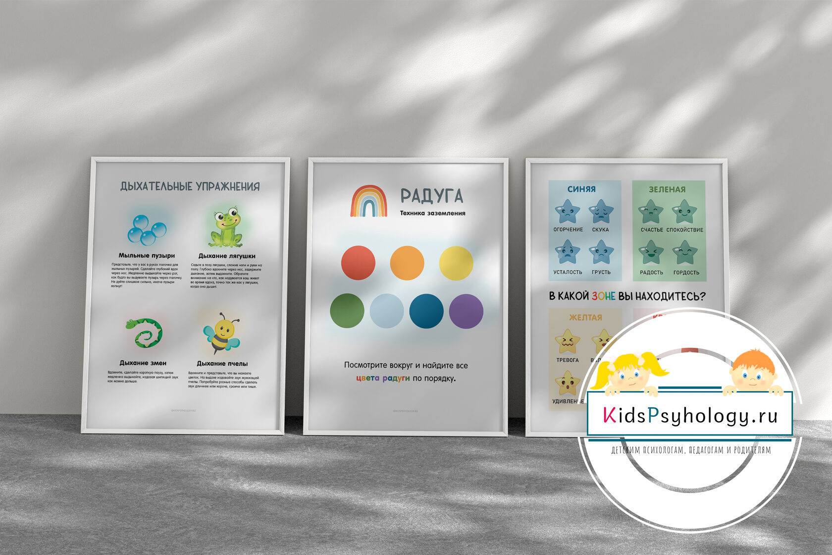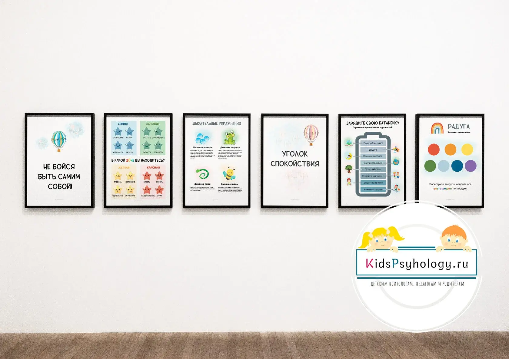 Мы создали по настоящему полезный набор плакатов для кабинета, стенда или уголка психолога в детском саду, школе или любой другой организации с полезной информацией для детей и взрослых. Современные психологические техники, уникальные дыхательные упражнения, аффирмации и приемы самопомощи - и всё это в ярком привлекательном дизайне. Комбинируйте и сочетайте постеры так, как вам нравится, убирайте или добавляйте новые, чтобы информация всегда оставалась актуальной.