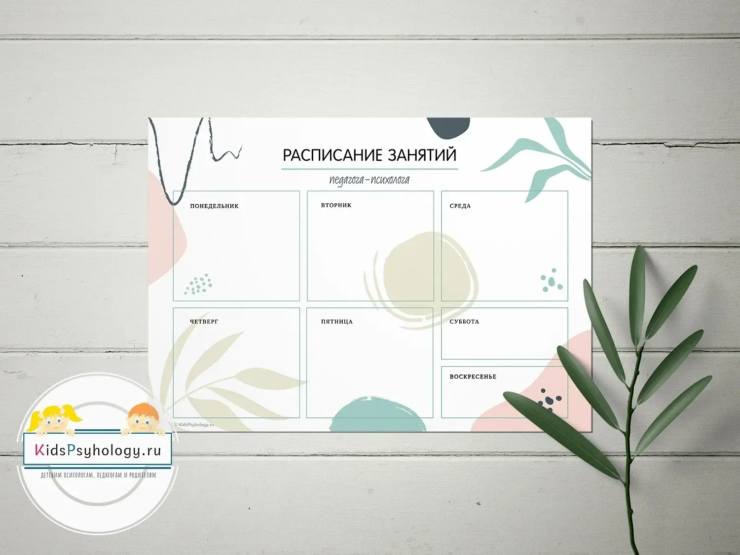 Расписание занятий психолога Вариант 1 (шаблон для печати)
