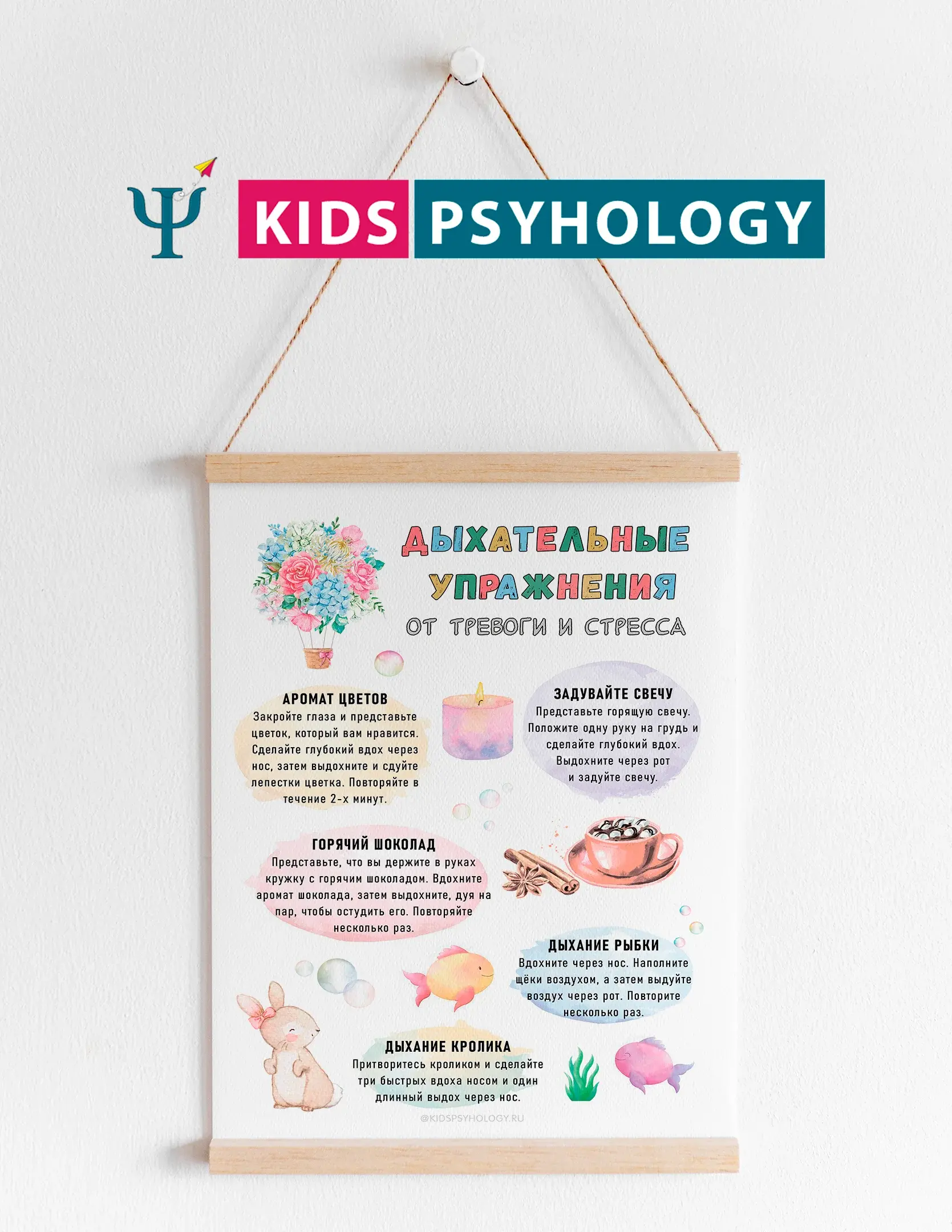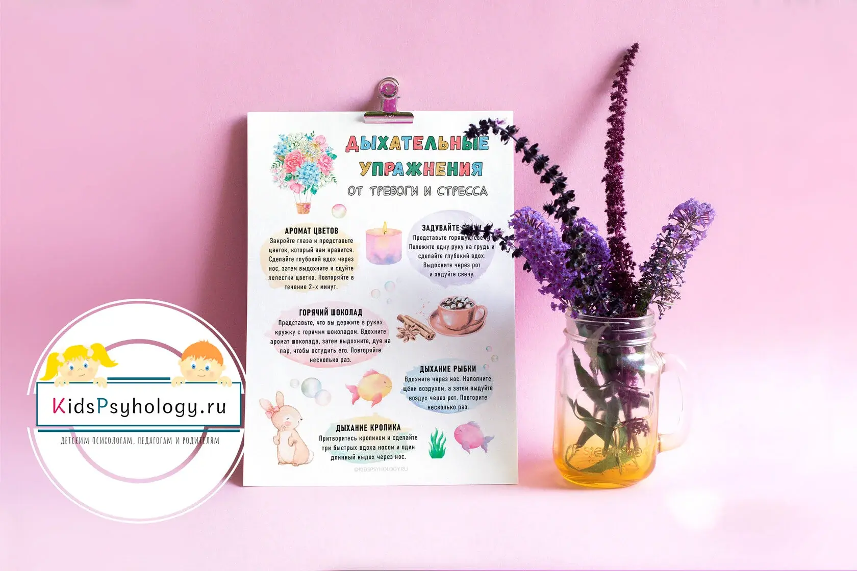 Игровые дыхательные упражнения - отличный метод самоуспокоения при тревоге и острых стрессовых реакция, который подходит как детям, так и взрослым. Простые упражнения легко запомнить, опираясь на красочные визуальные стимулы. Материал можно размножить как полезные памятки или же разместить в кабинете, на стенде в качестве постера.