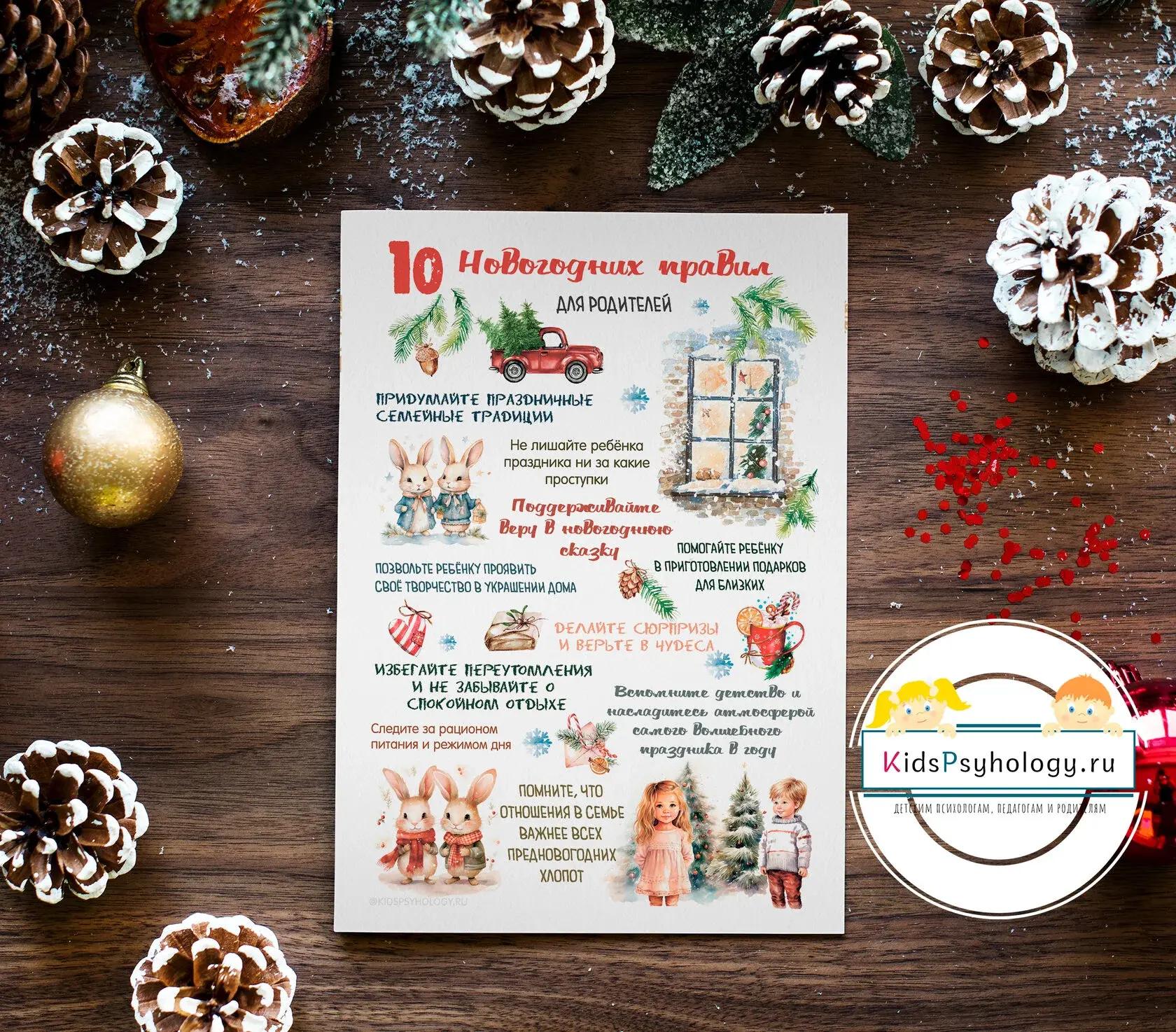 Приближаются самые долгожданные праздники - Новый год и Рождество! Для детей эти праздники особенно волшебные, ведь в них есть чудо исполнения самых заветных желаний. А для родителей - время хлопот и приятной предновогодней суеты. Чтобы провести эти праздники без лишнего стресса, отдохнуть, зарядиться приятными эмоциями и укрепить семейные отношения потребуется не мало сил и правильных решений. В нашем плакате мы собрали 10 полезных советов для родителей, которые напомнят им о самом важном при подготовке к Новому году.