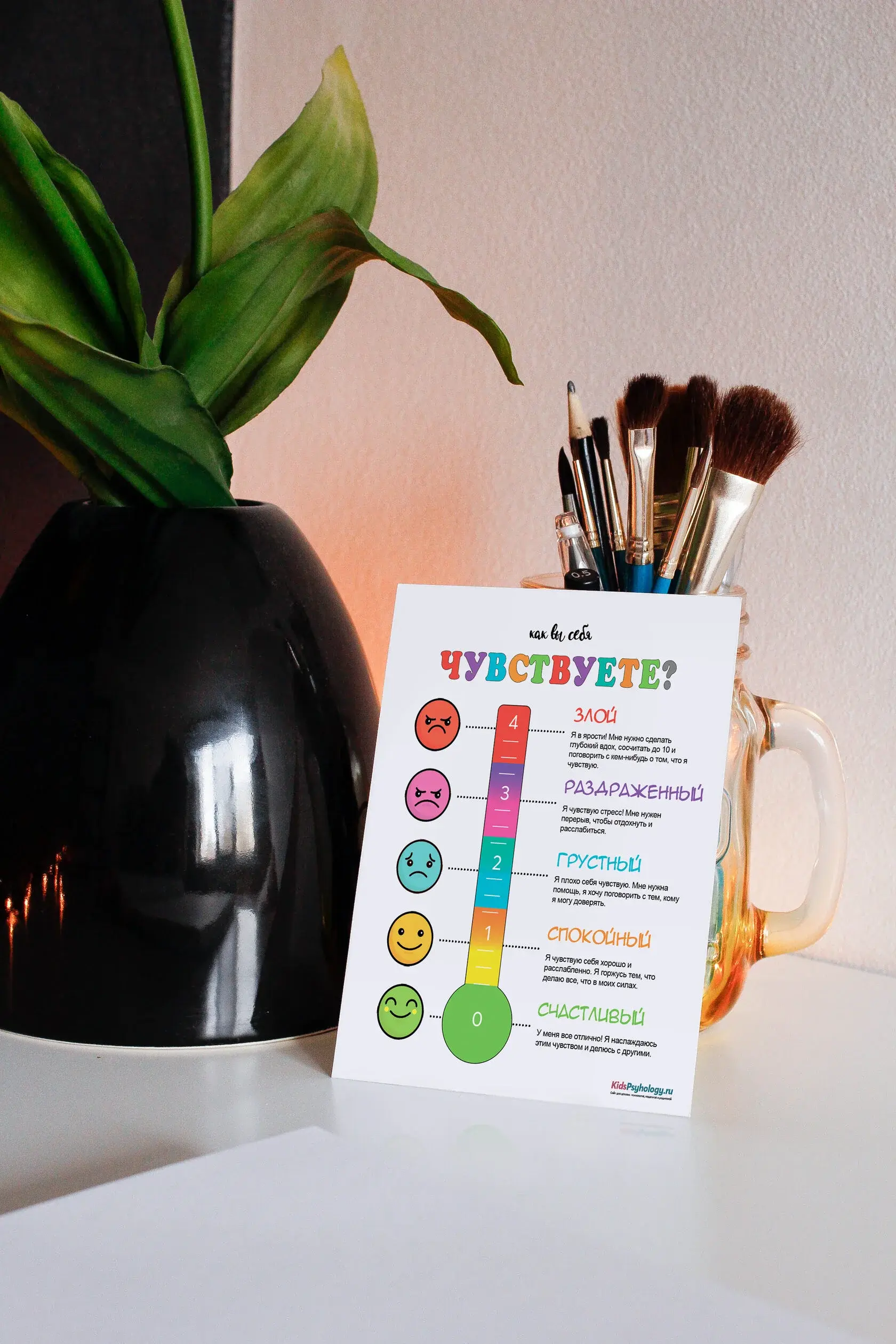 Этот термометр чувств служит отличным наглядным инструментом, чтобы помочь визуализировать настроение и чувства детей и взрослых.